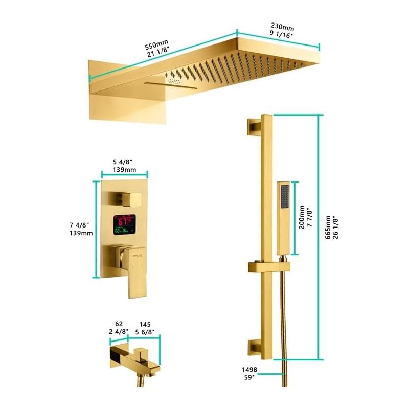 This innovative shower system is designed with smart features, including LED lights that change color based on water temperature and a built-in Bluetooth music system for an immersive auditory experience. Easy to install and crafted from durable brass and stainless steel, this shower set not only enhances your bathroom aesthetics but also ensures lasting performance.