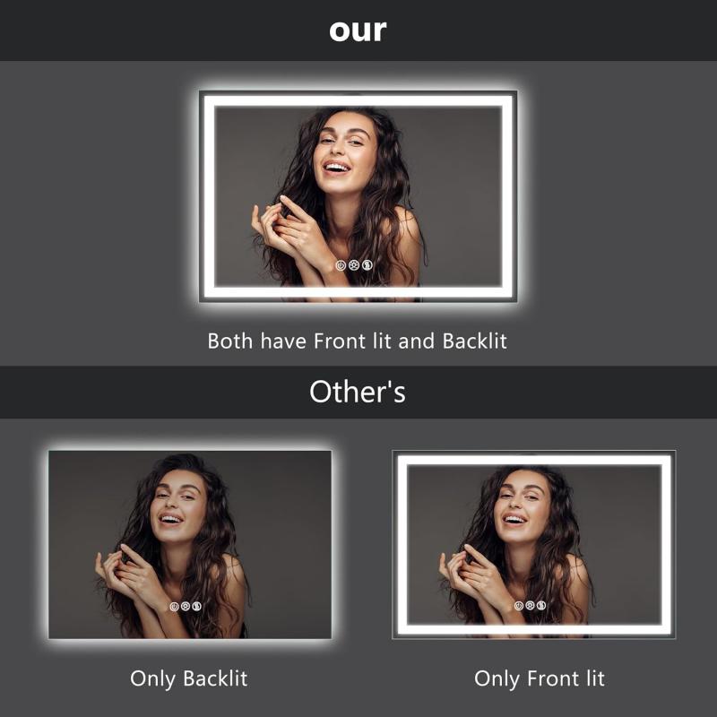 Featuring adjustable frontlit and backlit illumination in three different color temperatures, this mirror ensures optimal lighting for any activity, from applying makeup to relaxing in the bath. The anti-fog feature guarantees a clear reflection, while the smart memory function recalls your last brightness setting for effortless use.